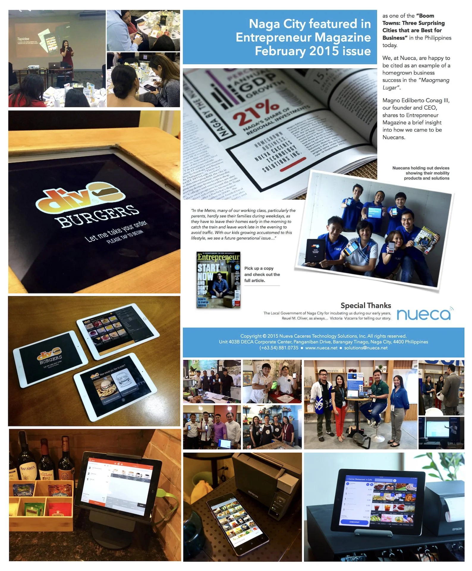 In February 2015, Entrepreneur Magazine featured Nueca as a prime example of a successful homegrown business, highlighting Naga City as one of the "Boom Towns: Three Surprising Cities that are Best for Business" in the Philippines. However, the startup faced challenges and ultimately came to an end in 2017.